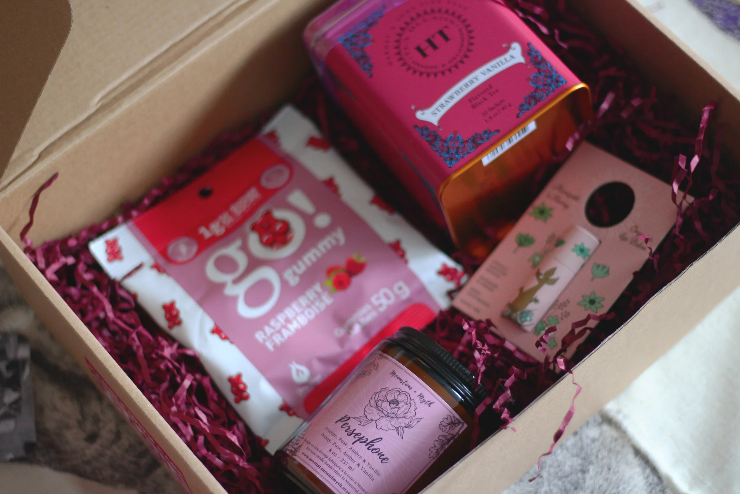 En plus de la laine, la boîte contenait quelques surprises comme une bougie de Moonstone & Myth, une boîte de thé Harney & Sons, un sachet de bonbons et un baume à lèvres Moomin. Je suis plus qu’enchantée du résultat et j’espère que la boîte a été à la hauteur de vos attentes à vous aussi. Personnellement, j’aurais adoré recevoir un tel cadeau pour la fête de l’amour !
